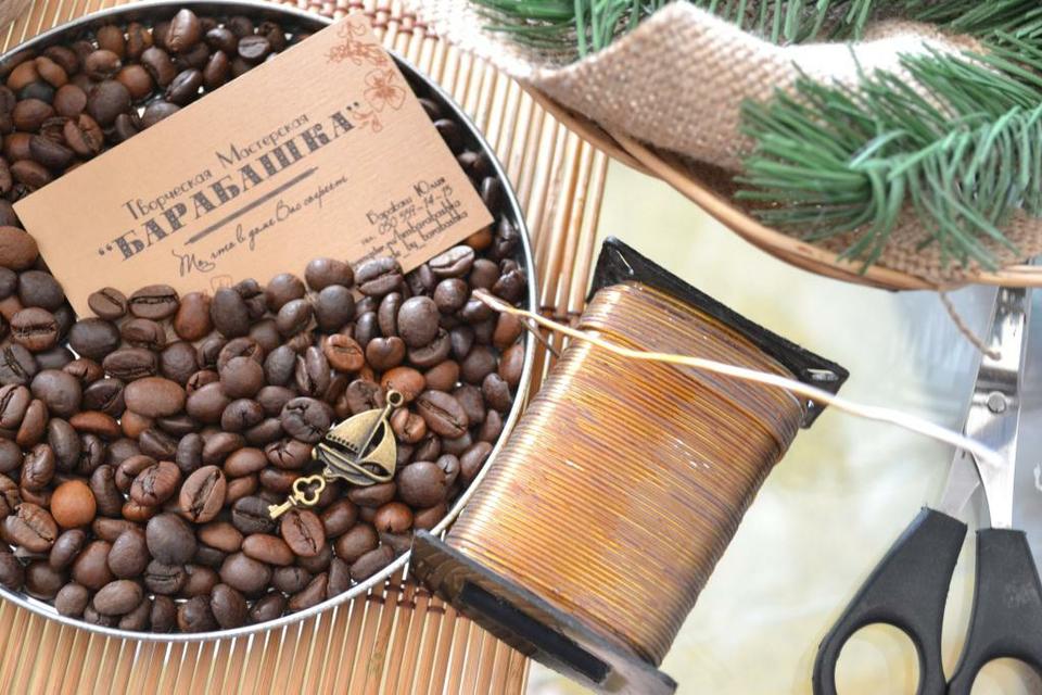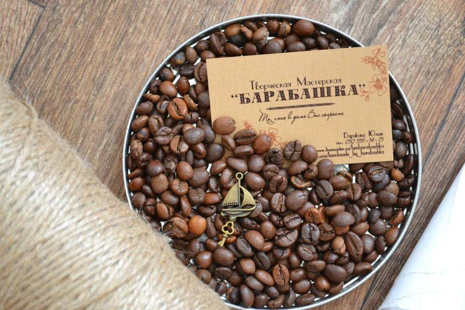 Для изготовления поделок подходит кофе разной степени обжарки, имеющий различную цветовую насыщенность. Купить зерна можно в специализированных магазинах, где продавец поможет подобрать кофе от янтарного до шоколадного оттенка, с матовой или блестящей поверхностью.