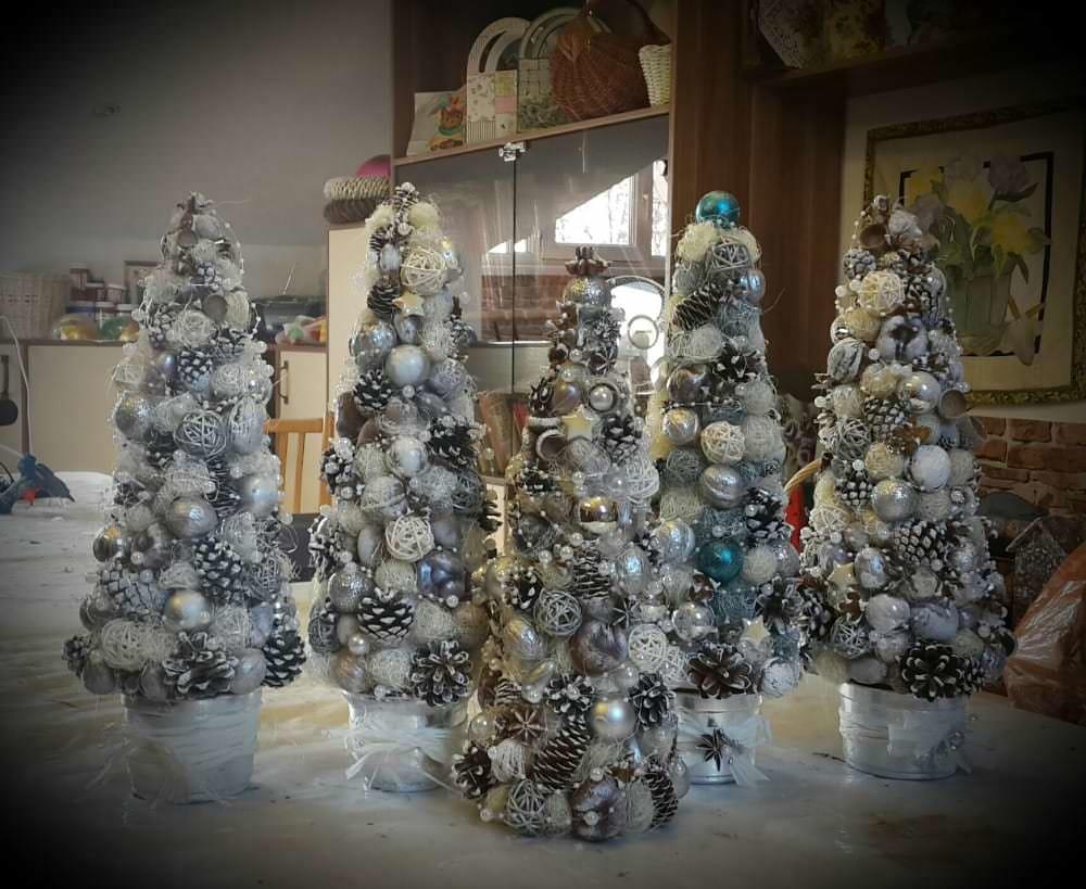 Самый простой вариант создания топиария заключается в следующем: в подходящую по размеру емкость устанавливают пушистую елочную ветку и укрепляют ее там с помощью декоративных камешков или любого другого утяжеляющего основание материала. Можно использовать и быстро застывающий состав: гипсовый, алебастровый, штукатурный.