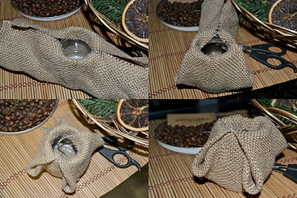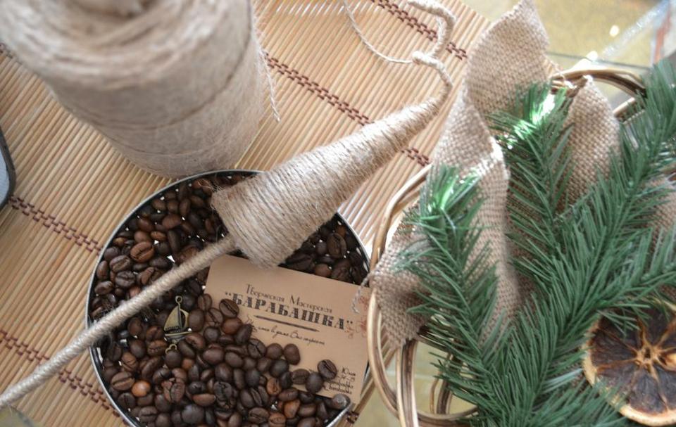 Таким же образом делают елочки из шпагата. Изделия из этого материала мне особенно нравятся, да еще в сочетании с декором кофе!