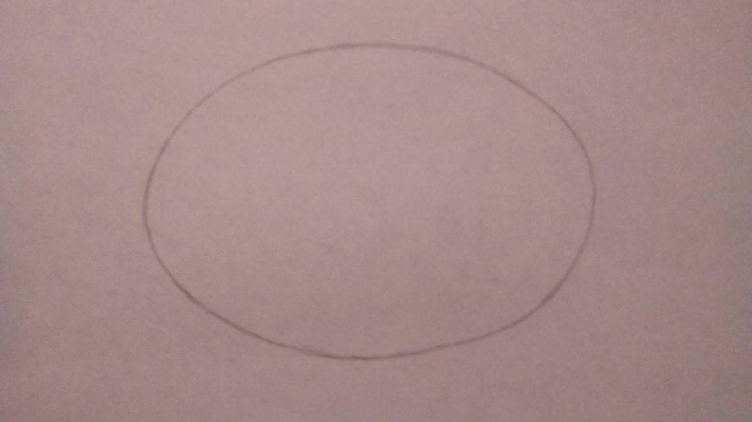 - Любой пончик имеет овальную форму. Поэтому на первом этапе изобразим простым карандашом овал среднего размера.