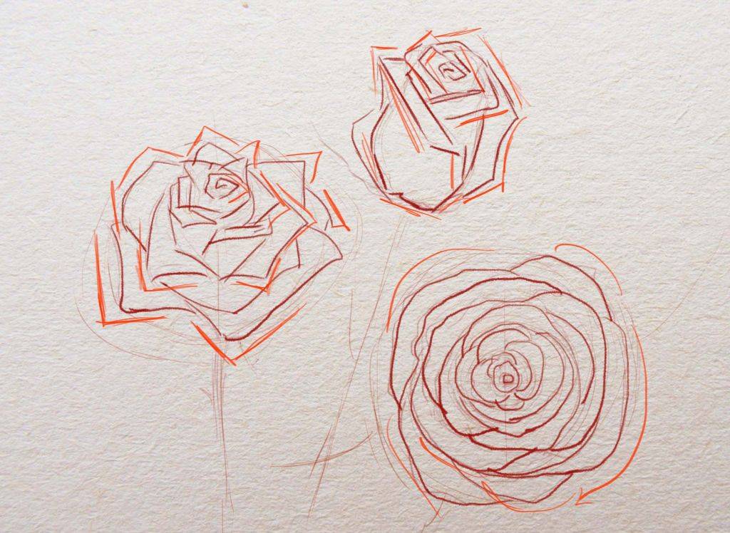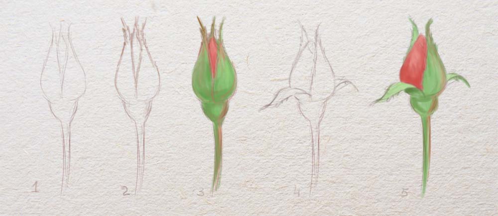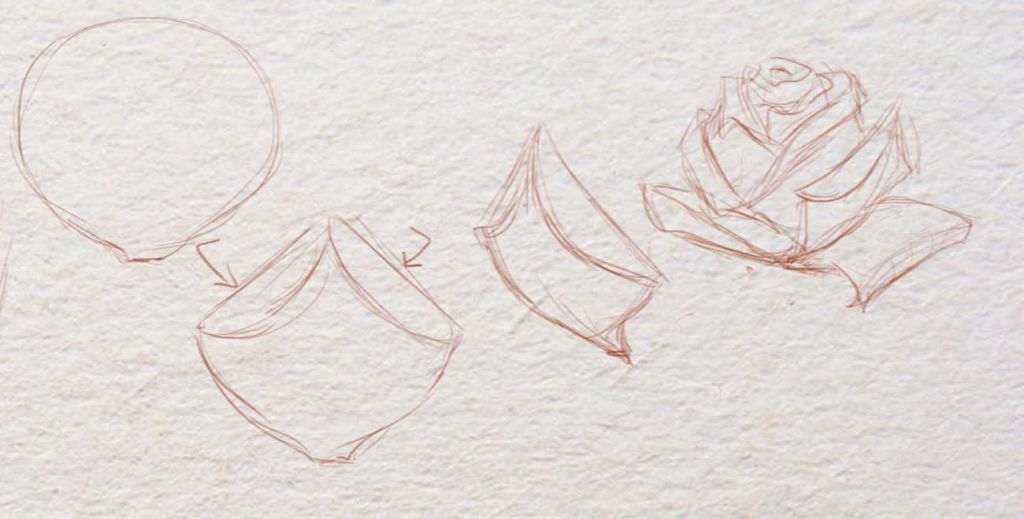 Как красиво нарисовать бутон розы поэтапно карандашом: схема