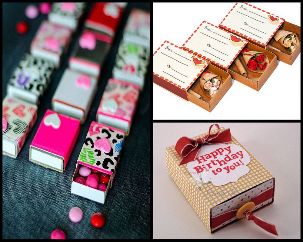 Подарок — это не обязательно огромная коробка с дорогостоящей вещью, приятности вполне можно поместить в обычный спичечный коробок. Это не менее приятно, но намного проще и дешевле.