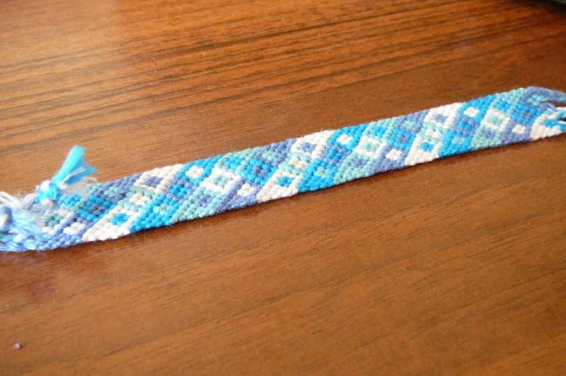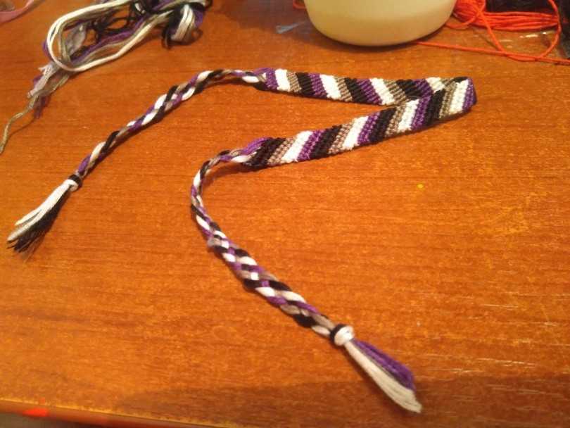 - Повторяйте все описанные этапы до тех пор, пока фенечка не получится нужной длины.