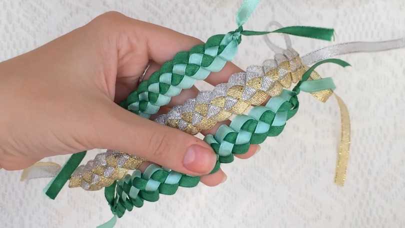 Более подробно, как плести из ленточек браслеты, показано в видео в конце статьи.