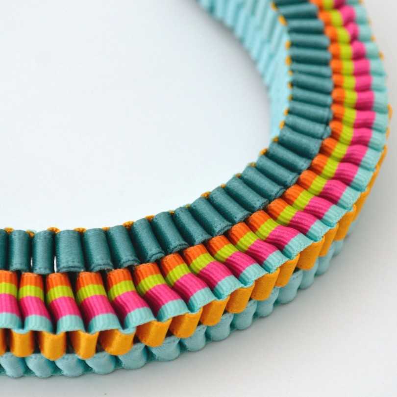 Повторяем все пять шагов до тех пор, пока ленточка не достигнет нужной длины. Вы увидите, что фенечка получается достаточно объёмной.