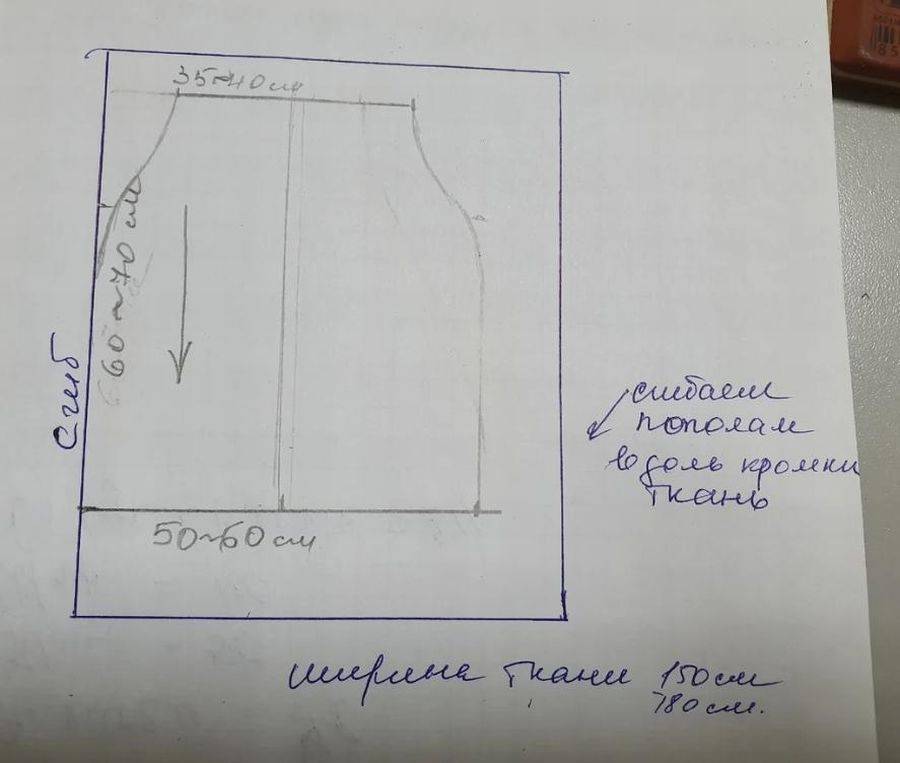 - Детали выкройки требуется располагать с изнанки относительно направления ворса, который должен быть направлен сверху вниз. Материал следует раскладывать в 1 слой, прикалывая детали с помощью булавок.