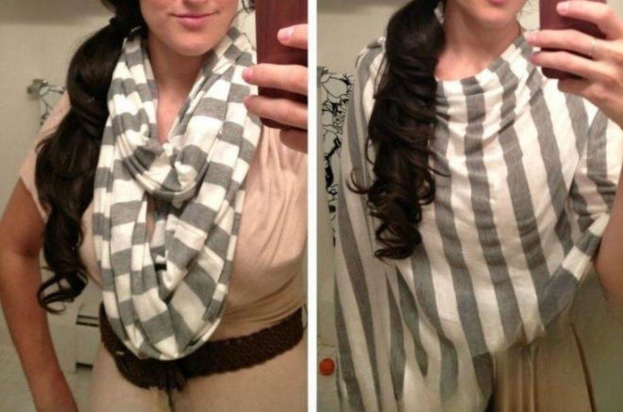 Вот различные варианты применения того же милк снуда из вискозной ткани.