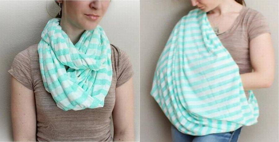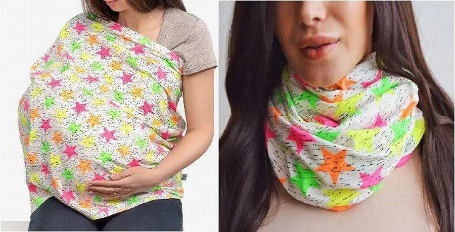 Милк снуд может служить не только накидкой для кормления, но и стильным дополнением гардероба.