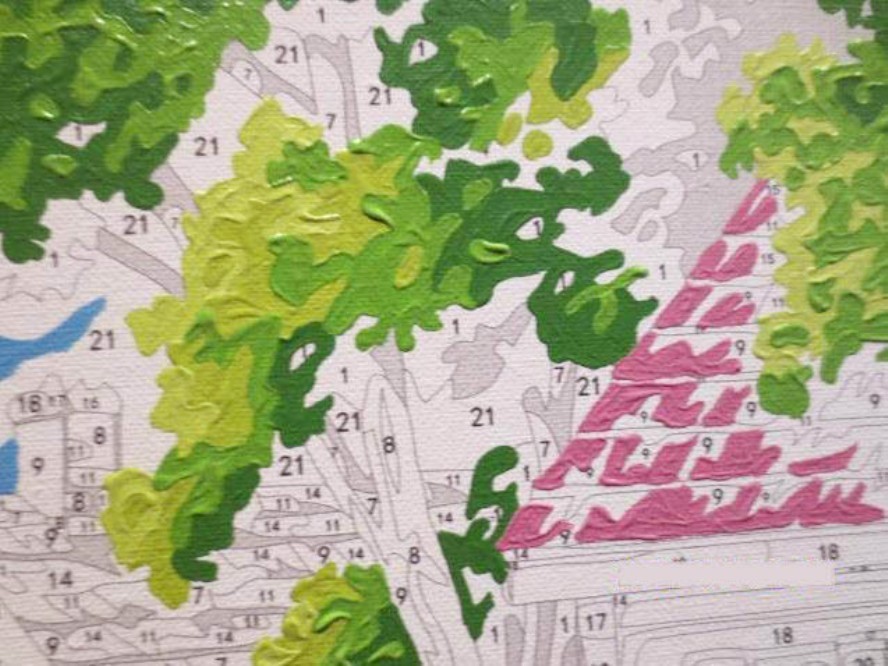 Холст абсолютно белый с размеченными и пронумерованными контурами. Некоторые размером 2-3 см, остальные – до 1 см. Есть и по несколько миллиметров. Картины для рисования по номерам тщательно пронумерованы и продуманы, поэтому точность раскраски очень важна. Любой, даже легкий и незаметный мазок, создает общий тон картины. В частности, картины Леонида Афремова. Когда я рисовала его картину, вначале не понимала, почему на основе так много мелких разметок. Впоследствии увидела, что контур создает переливы. Вблизи в его работах не видно оригинальности, но если отойти на пять метров, кажется, будто рисунок живой. Поэтому нужно внимательно раскрашивать каждый номерок. Они размечены на полях и тюбиках, так что ошибки не возникнет.
