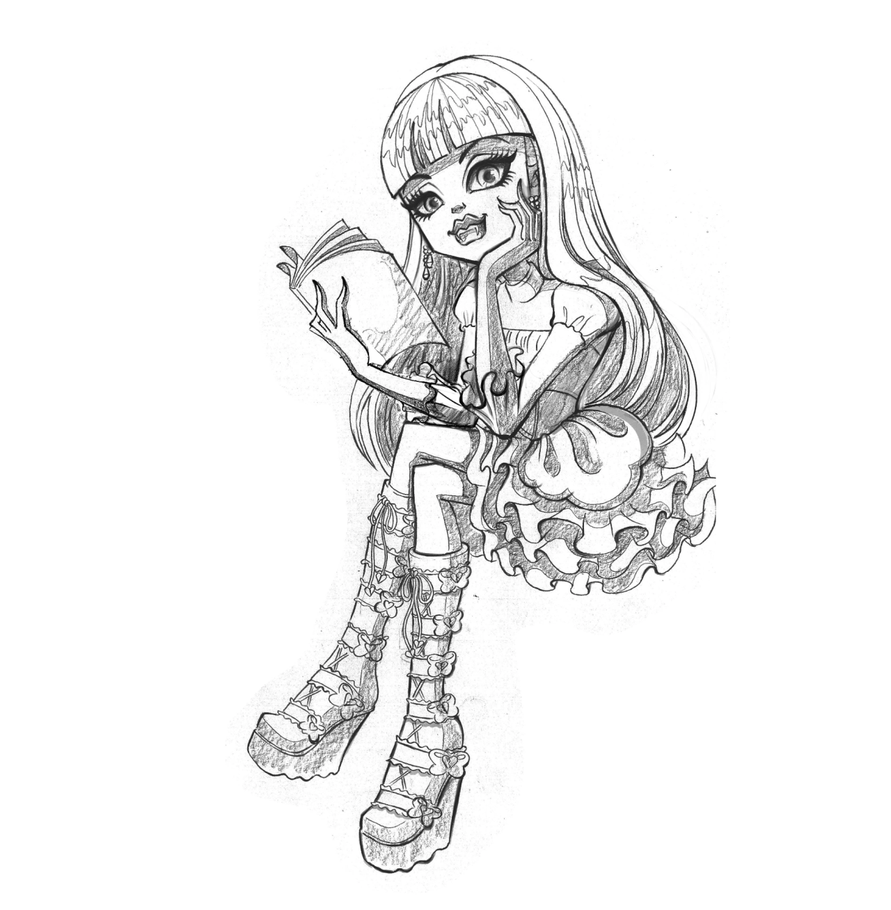 Итак, мы рассмотрели поэтапное рисование карандашом персонажей Монстер Хай как в виде портретов, так и в полный рост.