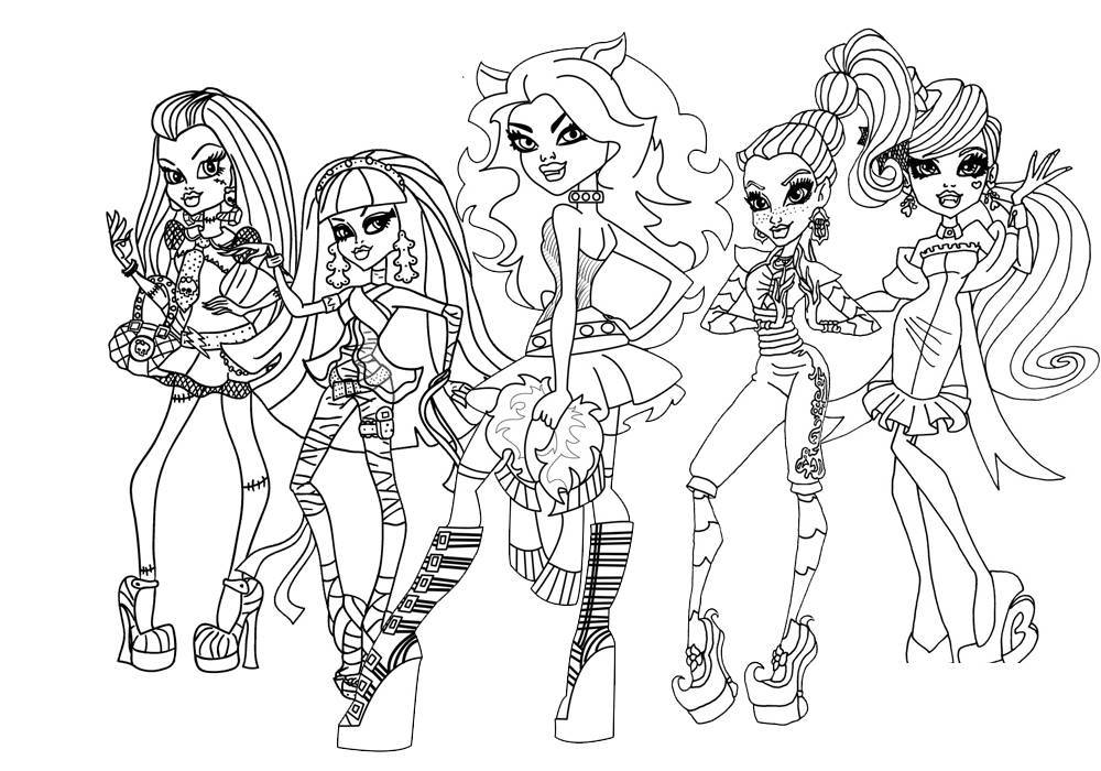 черно-белый рисунок героинь Монстер Хай для срисовывания 1