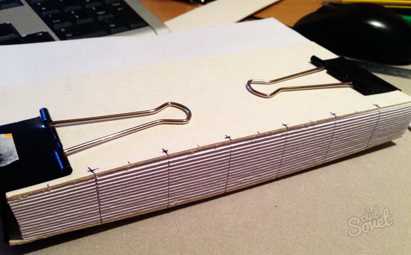 Ее приклеивают к заготовке блокнота по первым страницам и корешку и фиксируют на некоторое время зажимами до полного высыхания, но достаточно осторожно для того, чтобы следы от зажимов не были заметны и тонкая обложка сохранила ровную фактуру, как и, непосредственно, на фото самодельного блокнота