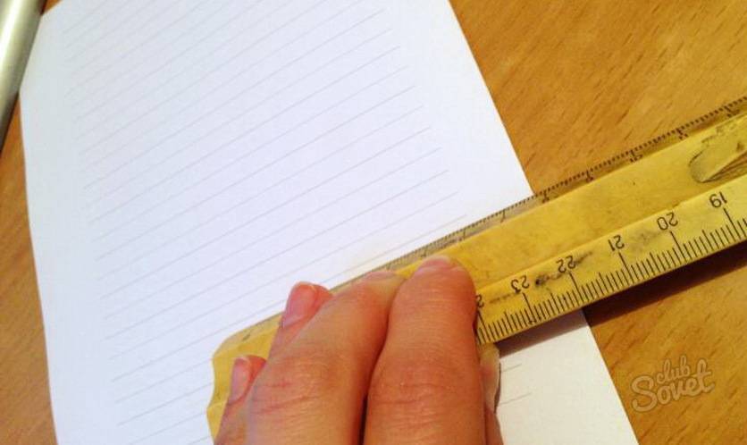 - От одной части отрезать полоску, которая по длине соответствует ширине листа, а ширина — ширине торца сшитых листов бумаги.