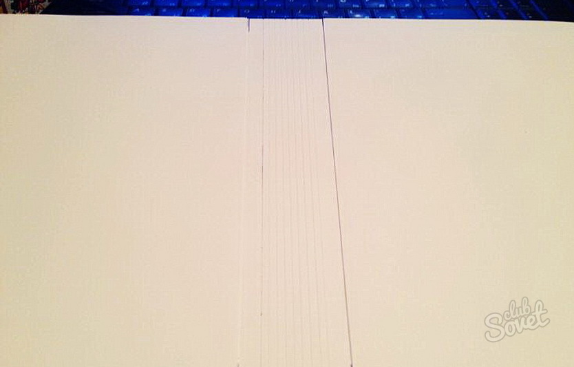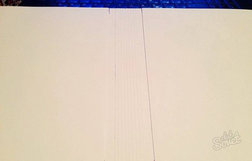 Теперь вам нужно сшить блок из листов. Переставьте зажимы. По линии сгибов нарисуйте полоски на расстоянии 3 см. друг от друга.