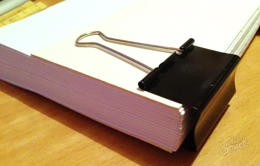 Данную стопку нужно хорошо спрессовать. Для этого, положите сверху и снизу картон и закрепите канцелярским зажимом. Так картон не позволит помять листы под нажимом.