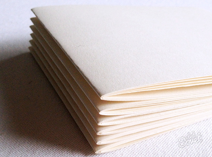 - Разрезаем подготовленные листы, чтобы получить будущие страницы. Стандартный размер 10 на 15 сантиметров. Вы можете подобрать другие параметры. Складываем листы пополам и кладем под пресс. Это облегчит дальнейшую работу. В таком виде продержите листы несколько часов, лучше оставить на ночь.