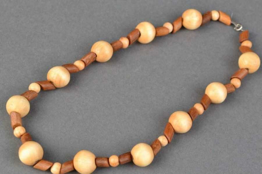 Деревянные бусины издавна использовались для создания бус. Это природный материал не только красив, но и приятен на ощупь. Готовые бусины из древесины можно купить в профильном магазине. Они могут быть традиционной шарообразной формы или иметь любой другой вид.