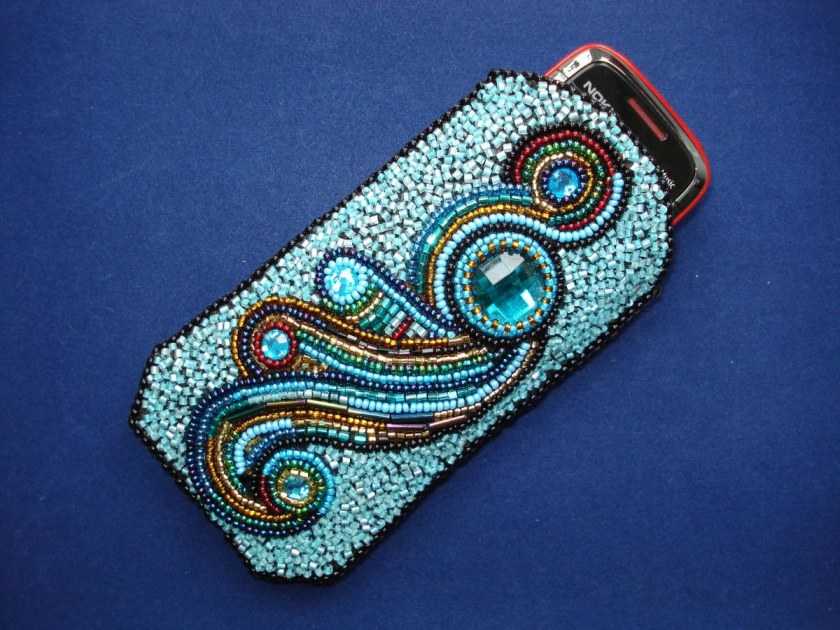 Для декора чехла также отлично подойдет старый кулон, рассыпавшееся ожерелье и фрагменты прочих украшений, которые уже давно пылятся в шкатулке.