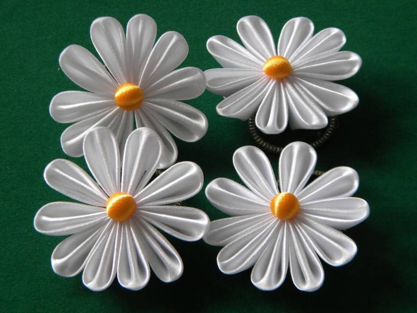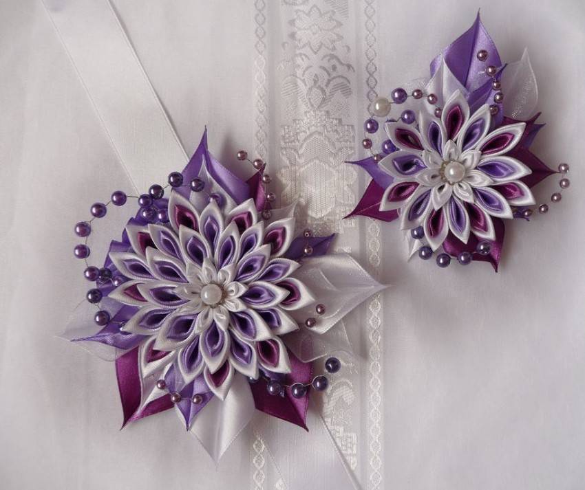 Каждый мастер канзаши предстаёт в виде художника, так как составление самого цветка из разнообразных форм лепестка – настоящее искусство. В отличие от китайских и японских мастеров, многие русские мастерицы создают канзаши из обычных атласных лент. Иногда в ход может пойти и любая другая ткань, начиная от ситца и заканчивая даже джинсовой тканью. Обычно получившиеся композиции из лепестков крепят на резинки для волос, тем самым получается очень нарядный бант, подходящий для любого праздника. Кроме этого, многие мастера крепят их на заготовку для броши, изготавливая и подбирая цвета для костюма или платья.