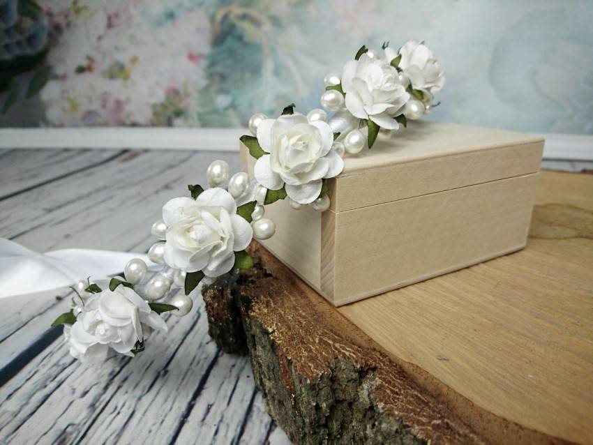 Композиции из лепестков закрепляют на обручах или резинках для волос