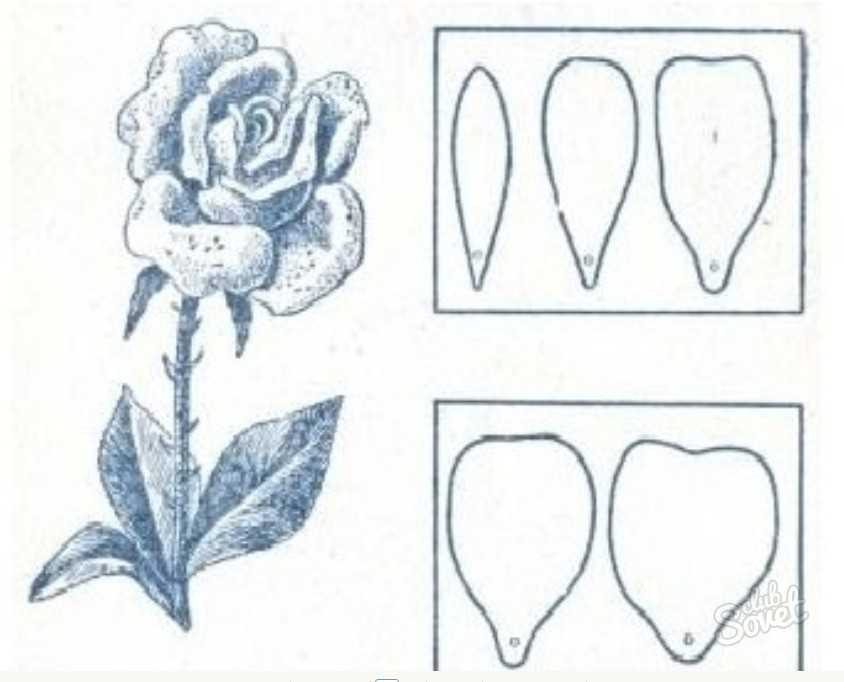 - Используя шаблон, вырезайте лепестки роз. Вам понадобится по шесть лепестков каждого размера.