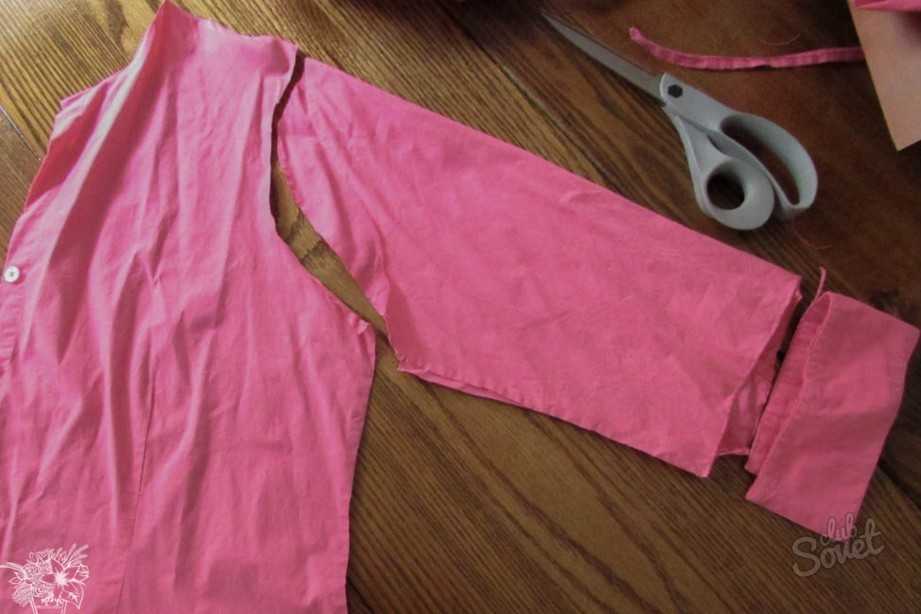 - Рубашку разрезать по швам. Ткань отпарить утюгом.
