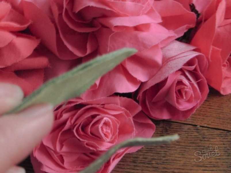 Если у вас в запасах есть вещи красного цвета, которые вы не носите они вполне подойдут для изготовления роз. Или же вы можете использовать кусочки новой ткани. Цветы не обязательно красные, в дело пойдут разные цвета, красный – это классика. Для лепестков возьмите ткань зеленых оттенков.