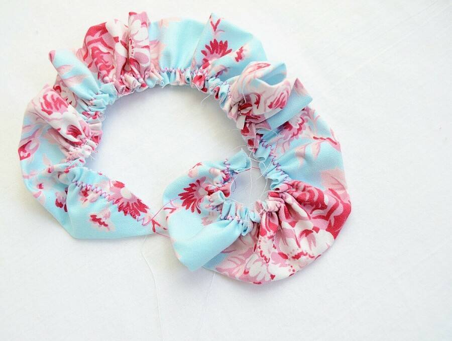 Шаг 5. Замкните круг, соединив два конца ленты и сделав несколько стежков (узелок завяжите на обратной стороне).