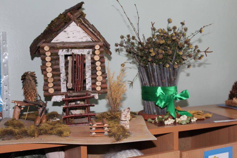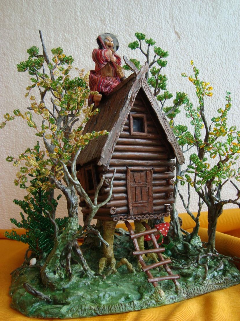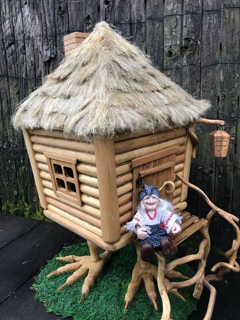 Создание вокруг избушки лесной картины немаловажно для общего фона – домик Бабы Яги, созданный своими руками, устанавливается в чаще.