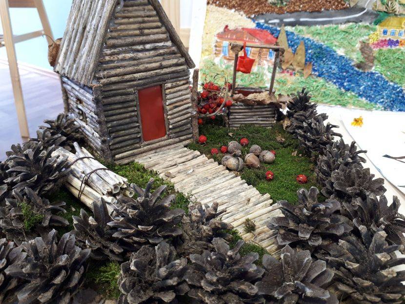 Собрать нужно подручные средства: сухой мох, шишки хвойных деревьев, пластилин, клей, высушенные ягоды, прищепки для белья, расправленные утюгом листья.