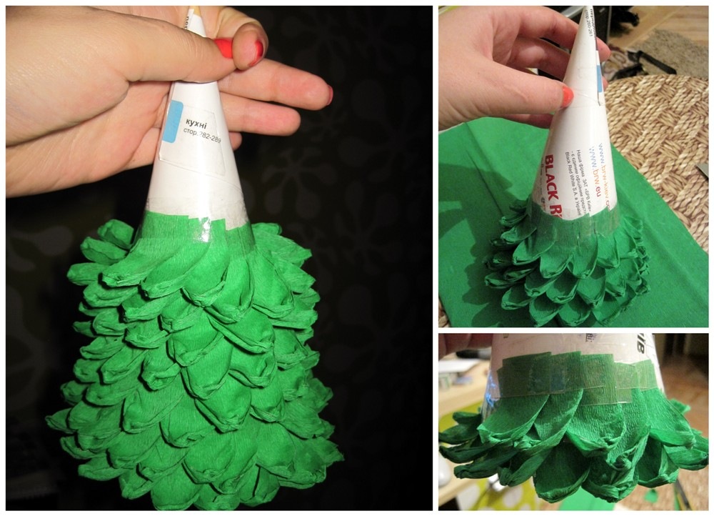 Осталось только надеть макушку на ёлку. Готово! Эта поделка станет замечательным украшением новогоднего стола или ярким и необычным подарком к празднику.