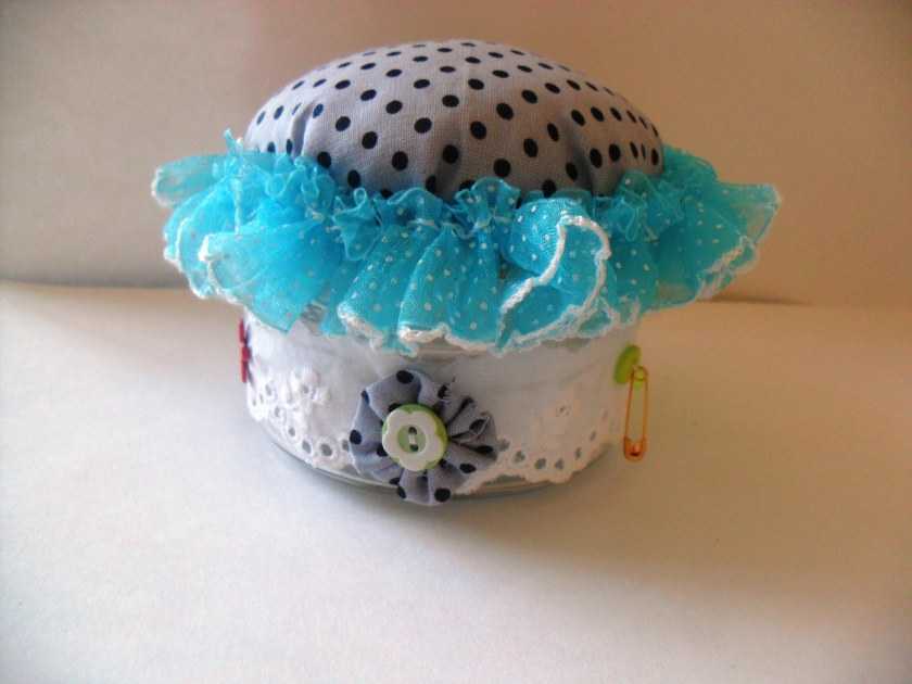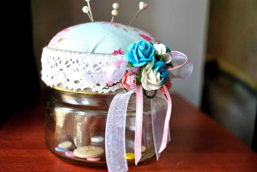 Этот вид игольницы очень функционален, так как крышка превратится в игольницу, а сама банка может выступить отличным хранилищем, например, для пуговиц или других метких деталей.