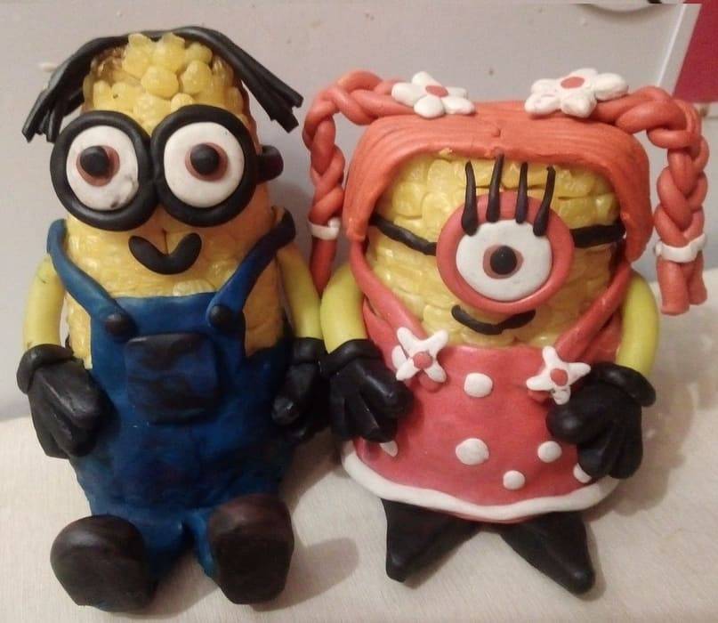 Пара миньонов из вареной кукурузы.