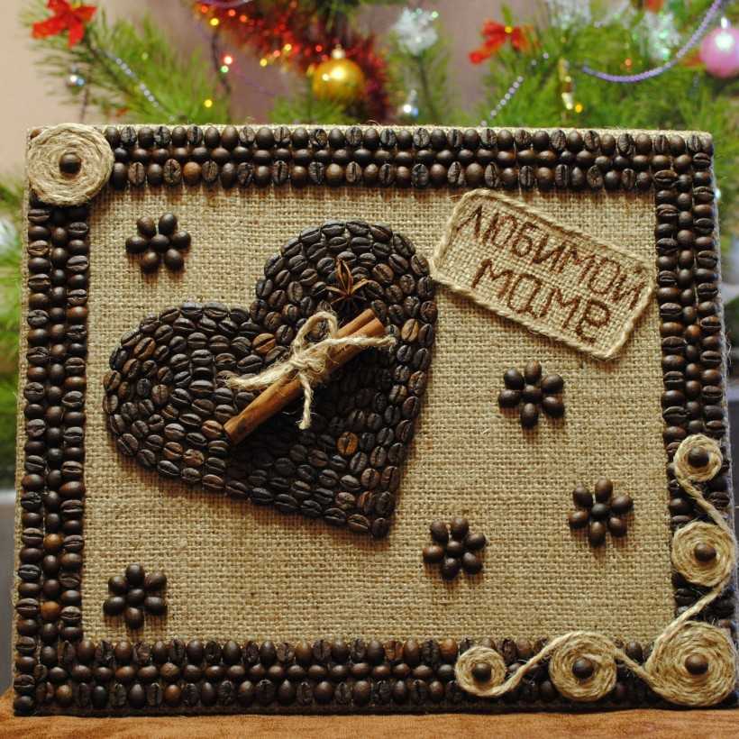 Основой для кофейной поделки послужит картон, плотная ткань, древесина или керамика.
