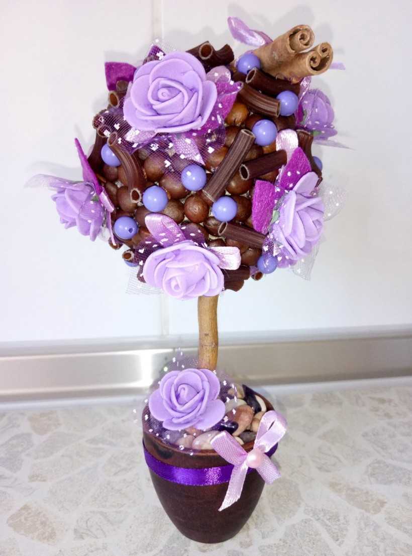 Если вы желаете создать действительно оригинальную композицию, можете изготовить топиарий с одним толстым и несколькими тоненькими стебельками.