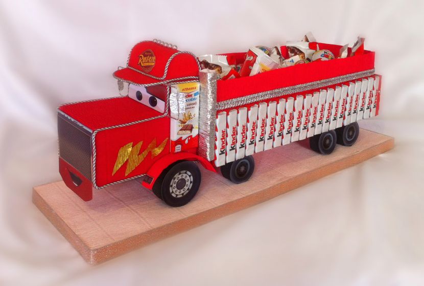 - В кузов ложем киндеры, можно еще ими обклеить саму машину, тут уже на ваше усмотрение.