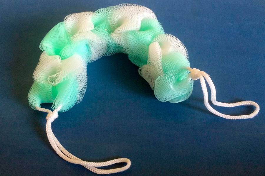 Изделия из нейлона или капрона очень часто приобретают для маленьких детей. Из-за повышенной мягкости от такой мочалки не стоит ожидать глубокого очищения. Зато, это отличный вариант для ежедневного использования. Самым главным недостатком подобных изделий является их форма: в результате частой эксплуатации они быстро развязываются и приобретают неаккуратный внешний вид.
