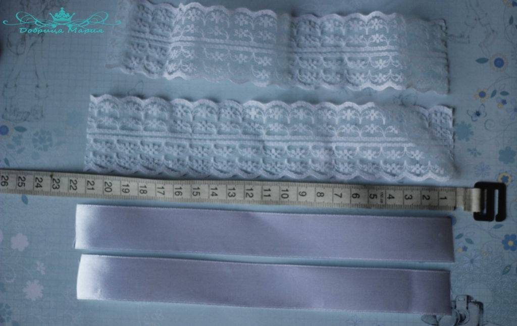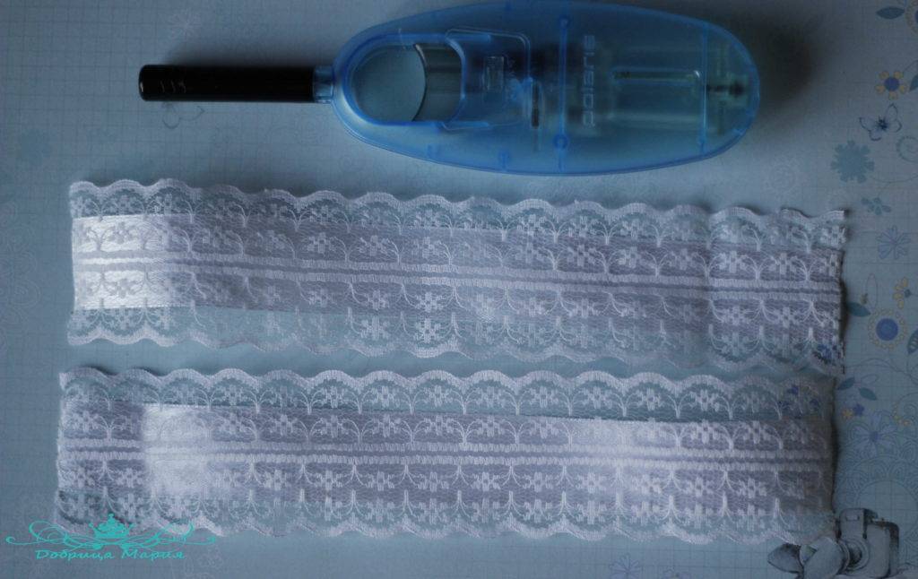 - нежнейшее и тончайшее кружево-резинка – отмеряйте 24 см от рулона, не растягивая полосу;