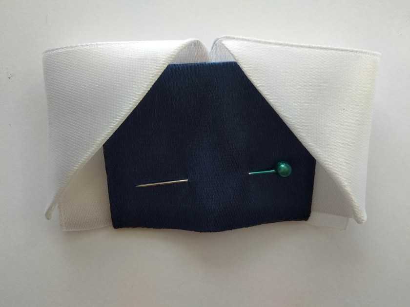 - Свободные кончики складываются крест на крест с задней стороны и закрепляются иглой.