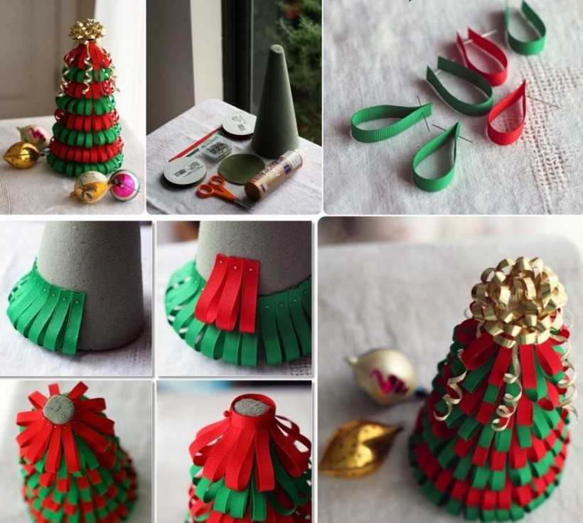 Очень интересно смотрятся небольшие настольные елочки, выполненные в этой технике.