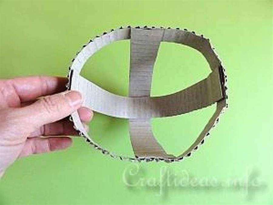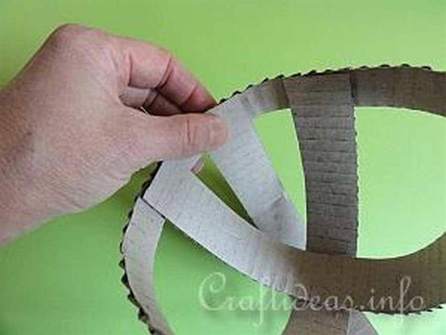 Нарежьте полоски из картона. Для обода, основы, корзины возьмите полоску потоньше и подлиннее, чем остальные 4. Скрутите её кольцом и склейте. Для ручки тоже понадобится полоска немного короче остальных.