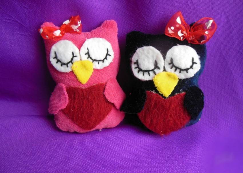 Фетр – замечательная удобная ткань, имеющая яркую палитру цветов. Он позволяет сшить разнообразные поделки своими руками для детей, а затем декорировать ими детскую комнату. Заменить ткань помогут хозяйственные салфетки (обычно они продаются набором из четырех цветов). Сшиваются такие поделки-игрушки своими руками без помощи швейной машинки, вручную.