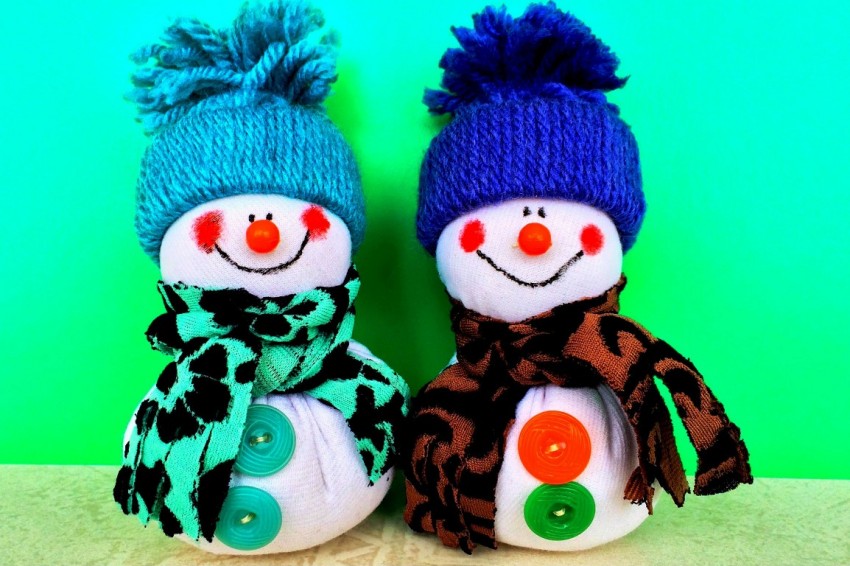Снеговик – своеобразный символ зимы и, естественно, его присутствие для новогоднего интерьера станет как раз кстати. На фотографиях нашей подборки представлены варианты, как смастерить такие поделки своими руками поэтапно, используя пенопластовые шарики, носки, помпоны. К детсадовскому утреннику подойдет более крупная фигура, оформленная с помощью нити, воздушных шаров, клея. Надуйте пять шариков разных размеров (два одинаковых для ручек). Каждый из них обмотайте нитью, обмоченной в клей (вполне подойдет ПВА). Когда заготовки полностью высохнут, шарики нужно лопнуть, достать изнутри. Готовые шары скрепляются между собой. Поделка «снеговик» своими руками, практически, готова. Останется оформить глазки (бусины, пуговицы), рот из нити, нос-морковку (сшейте из ткани). Традиционно, голову дополняют ведерком, шею оформляют шарфом.