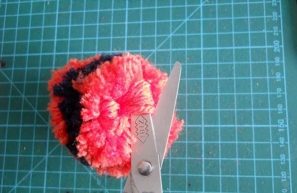 - Разрезать при помощи ножниц петли и аккуратно подровнять готовый помпон.