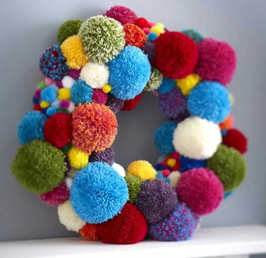 Для изготовления помпона можно использовать разные виды пряжи, например: шерстяную, синтетическую или меланжевую. Изделие получится ярким и разноцветным, если использовать пряжу разного цвета. Вы можете сделать ваши шарики редкими или очень пышными, это будет зависеть от плотности наматывания ниток, а также от вашей фантазии.