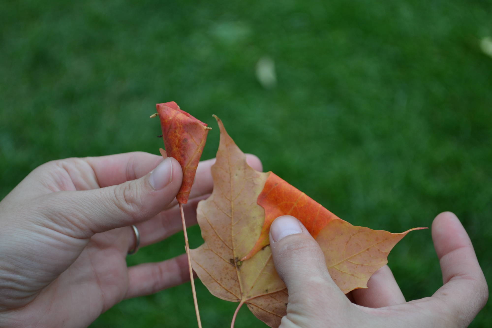 Выбираем кленовый листок нужного оттенка цвета и складываем его пополам.