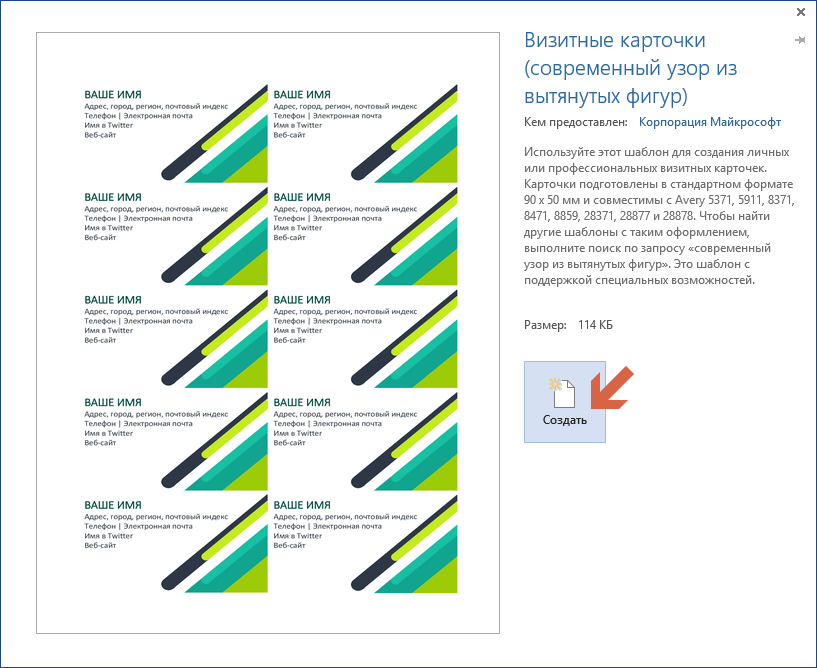 В любой версии Microsoft Word есть готовые шаблоны визиток. Рассмотрим, как создать визитки с их помощью.