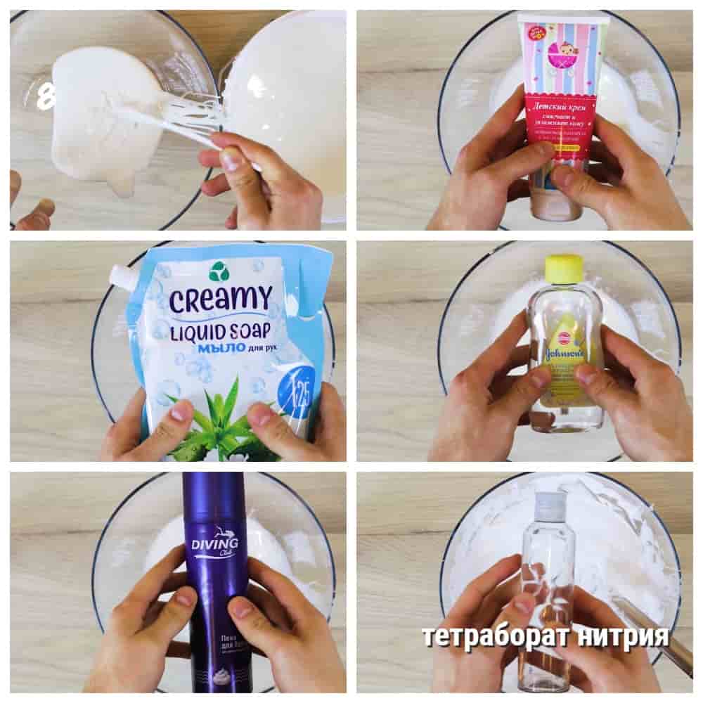 Нужна базовая составляющая. Слайм с тетраборатом натрия и пены, в силу химических свойств, имеет больше преимуществ.