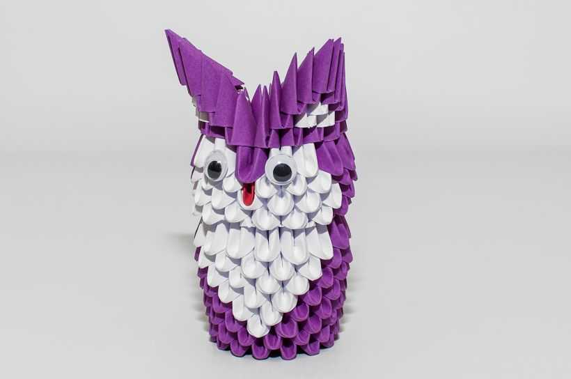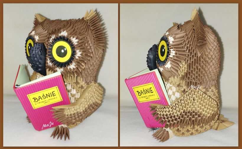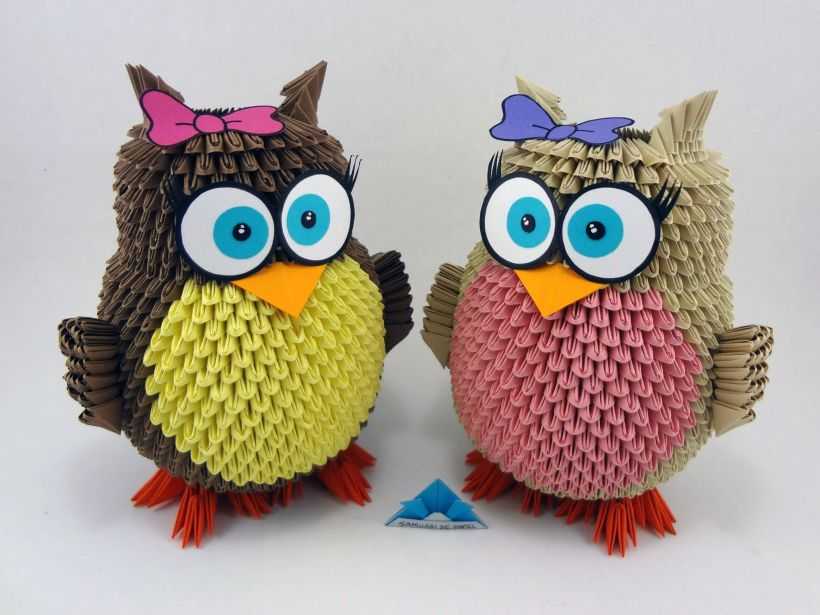 Объёмная оригами сова из бумаги, модульная поделка для детей сборка по схеме