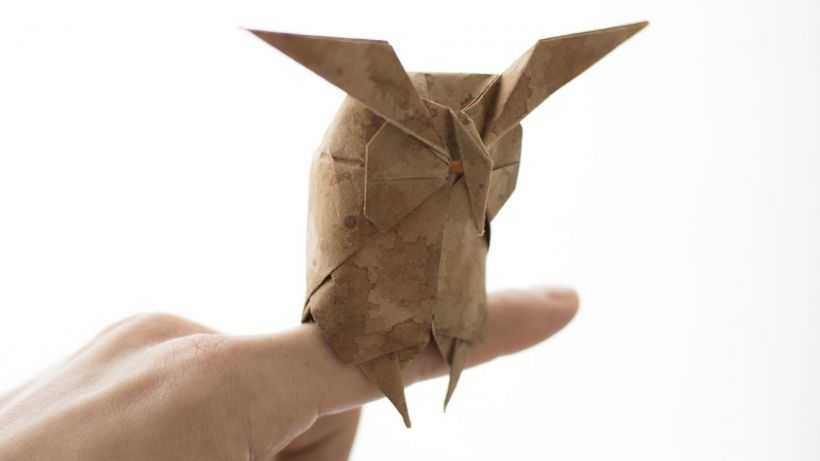 Этот способ изготовления совы из бумаги посложнее, но результат получается очень красивым и необычным.